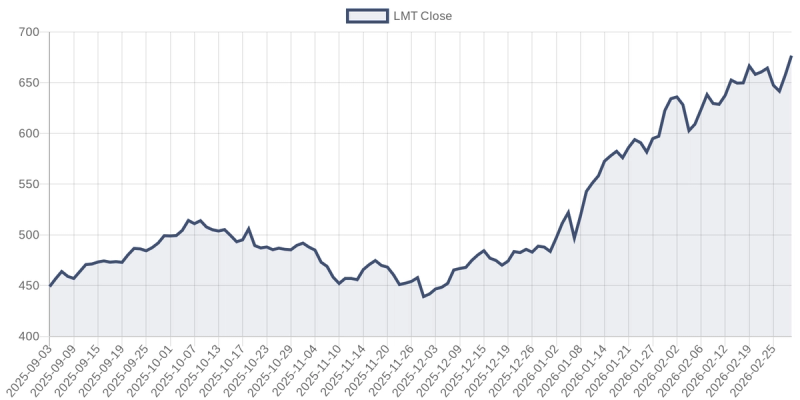 As the chart below illustrates, Lockheed Martin has seen renewed momentum as geopolitical tensions have escalated over the last six months, breaking out from previous consolidation ranges.